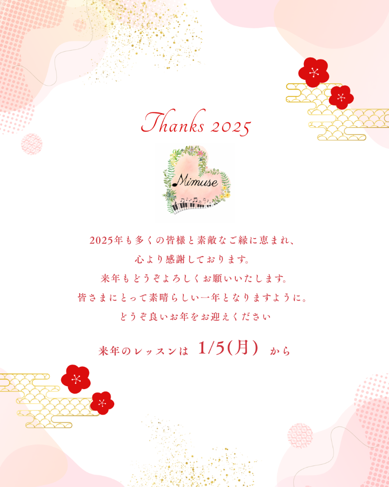 🎼水曜日・年末年始はお休みです。